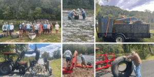 September 6, Mountain Island Cleanup. NCWF’s High Country Wild and partners joined forces for an unforgettable experience on the New River in Alleghany County. The crew removed 3200 lbs of trash and debris in an effort to keep our waterways clean and maintain suitable habitat for the abundance of both terrestrial and aquatic wildlife that rely on the New River.