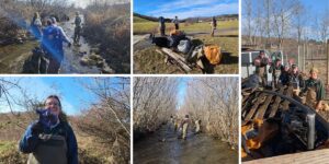 December 13, Naked Creek Cleanup and Tree Guard Installation: New River Conservancy alongside NCWF High Country Wild, New River State Park, and Keep Ashe Beautiful hosted a creek cleanup. 800 pounds of trash and debris were removed from the creek. We also installed tree guards for our newly planted trees at the base of Mount Jefferson.