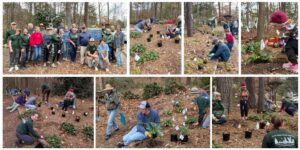 November 30, SWC Bass Lake Workday: NCWF South Wake Conservationists Chapter held a garden workday at their native shade plant demonstration garden at Bass Lake Park in Holly Springs. Volunteers planted, mulched, and raked the garden, giving it a refresh before the start of winter. Over 70 native plants–including white wood aster, foam flower, and Christmas fern–were installed thanks to the careful planning of the chapter’s new Wildlife Gardens and Habitat Committee.