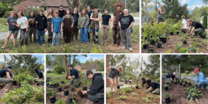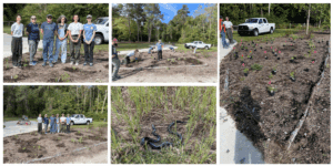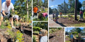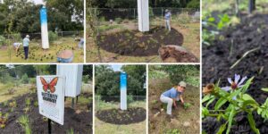 September 2, Butterfly Highway Native Planting: Volunteers added 51 new plants and 10 different species to the Butterfly Highway pitstop at Halyburton Park, including Andropogon gerardii, Coreopsis verticillate, Eryngium yuccifolium, Monarda punctata, Muhlenbergia capillaris, Schizachryium scoparium, Sisyrinchium angustifolium, Solidago odora, Vaccinium tenellum, and Vaccinium arboreum.