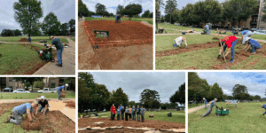 September 30, Pollinator Pitstop Prep: NCWF Charlotte Wildlife Stewards chapter is partnering with Central Carolinas Master Naturalist volunteers and Mecklenburg County Park and Recreation to install a Pollinator Pitstop on the Butterfly Highway at Veterans Park in Charlotte. Volunteers gathered to prep the 1,000 sq ft. site for planting in November. Tasks included sod removal, laying cardboard, mulching, and staking.
