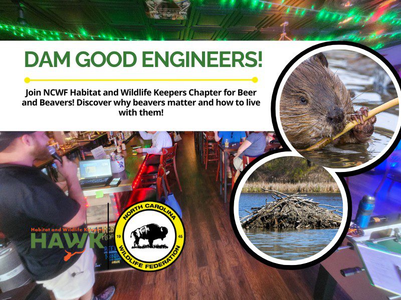 Join NCWF Habitat and Wildlife Keepers Chapter for Beer and Beavers! Discover why beavers matter and how to live with them! Beavers don’t just build dams—they build entire ecosystems. Join Ruby Davis, Director of NC Wildlife Rehab and environmental scientist, for a fun, eye-opening look at how beavers improve wetlands, support wildlife, and occasionally drive… |
