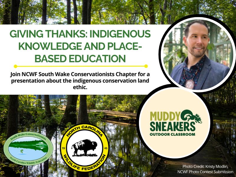 Join NCWF South Wake Conservationists chapter for a presentation about the indigenous conservation land ethic. Our speaker, David Rahahę́·tih Webb, is an enrolled citizen of the Tuscarora Indians of the Kahtenuaka Territories, the Executive Director of Muddy Sneakers, as well as an author, artist, and historian. His presentation will cover how the indigenous conservation ethic… |
