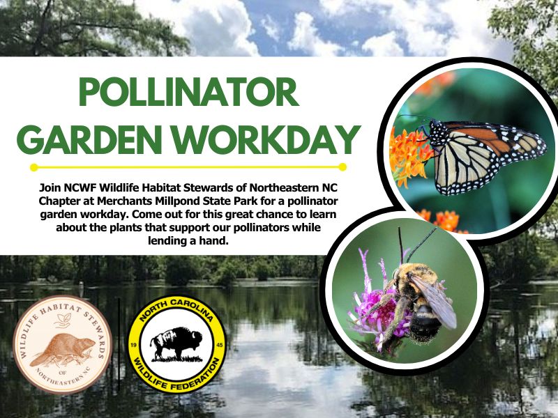 Join NCWF’s Wildlife Habitat Stewards of Northeastern NC Chapter at Merchants Millpond State Park on Wednesday, April 1, from 10 a.m. to noon as we get the pollinator garden ready for the season. Together we’ll tend the garden trimming shrubs, caring for the flowering perennials, and pulling invasive weeds. It’s a great chance to learn…
